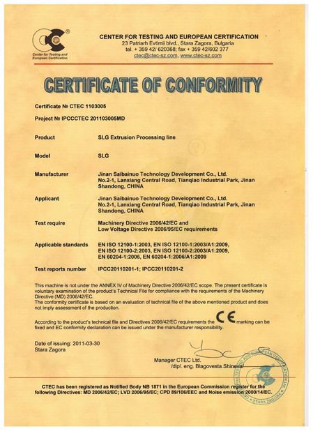 In 2006,Saibainuo company obtained CE, BV, ISO9001 and other international certifications.